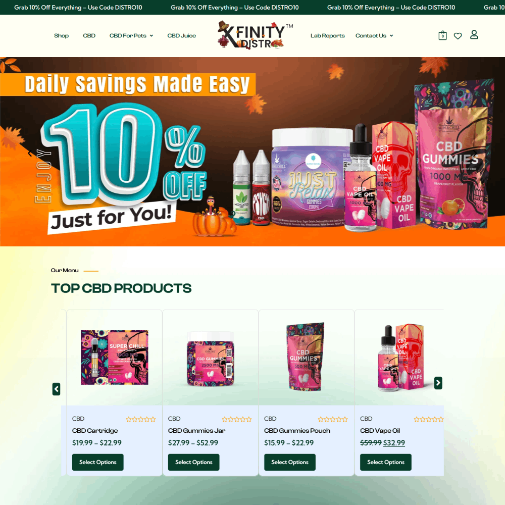 CBD E-Commercewadmin2025-11-21T07:09:53+00:00 High-Performing Websites Built for CBD E-Commerce Delusion Smoke Super Chill CBD-Products Wholesale Super Chill CBD-Products Vision Distributor Xfinity Distro Chill Vape Juice Super Chill Distro Wholesale Delusion Smoke Green Leaf Kratom Next-Level CBD E-Commerce Spaces — In Progress Revealing Soon Revealing Soon