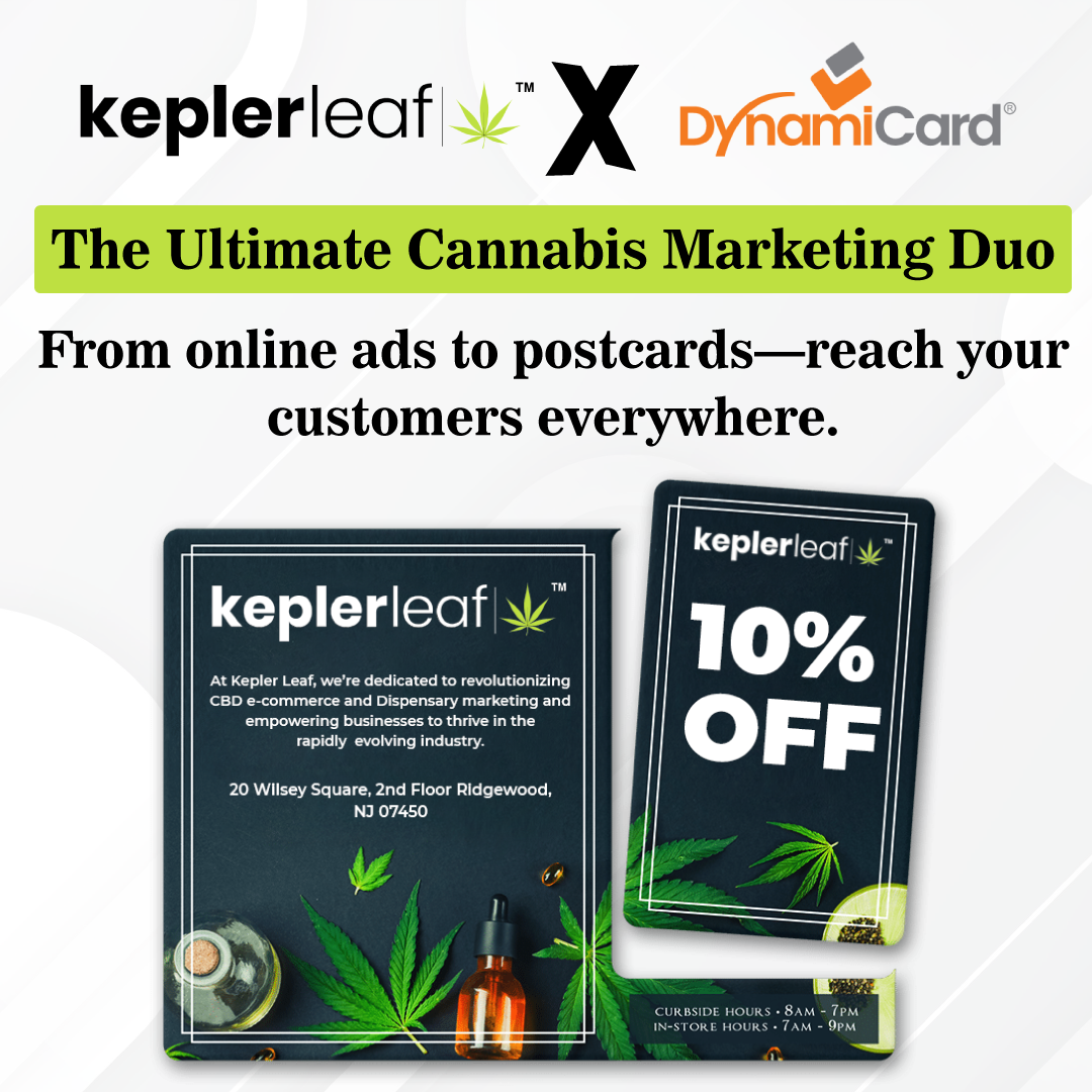 Through our partnership with DynamiCard, Kepler Leaf offers premium plastic mailers designed specifically for cannabis dispensaries. These durable, high-impact postcards stand out in the mailbox and stay in customers’ hands longer than traditional paper mail. In an industry with strict digital advertising restrictions, direct mail provides a fully compliant, highly targeted, and measurable way to drive foot traffic.
